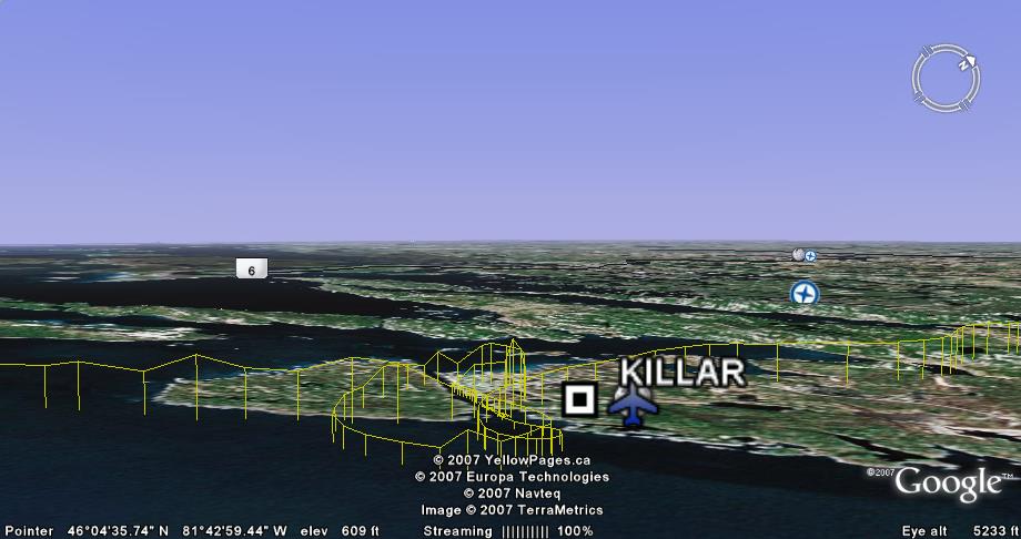 Looking at Killarney, Ontario CPT2NOTE:Erractic readings over Georgian Bay. Landing in River for Refuel and depart for inland lake. Arriving Killarney in Floatplane for Fueling at Pitfields NEXT Arriving Tyson Lake |